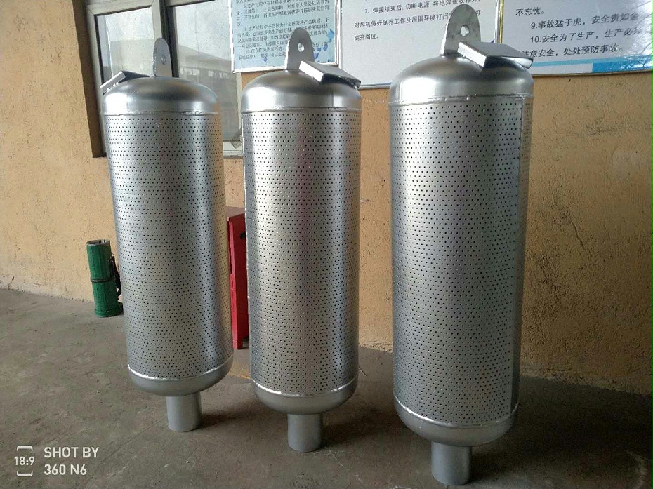小孔消聲器由一根末端封閉的直管和外殼組成,管壁及殼體上鉆有很多小孔。小孔消聲器的原理是以噴氣噪聲的頻譜 為依據(jù)的,如果保持噴口 的總面積不變而用很多小噴口來代替,當氣流經(jīng)過小孔時、噴氣噪聲的頻譜就會移向高頻或超高頻,使頻譜中的可聽聲成分明顯降低,從而減少對人的干擾和傷害。